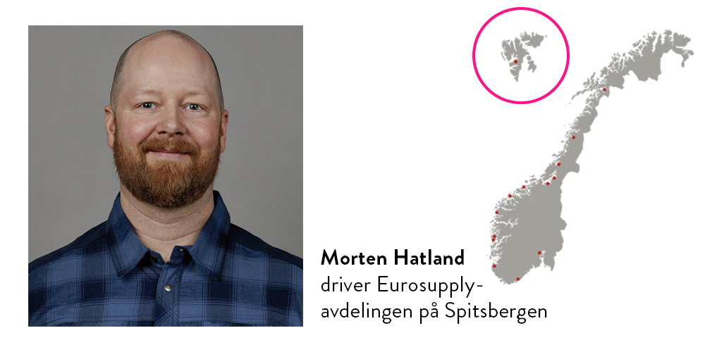 Morten Haltand har full kontroll på varelageret til Eurosupply/Servicegrossistene på Spitsbergen. - Men hvordan er det egentlig å leve og drive med storkjøkkenleveranser helt her oppe i isødet? Vi har stilt ham noen spørsmål: