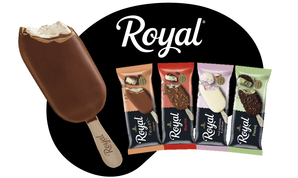 Vi setter kvalitet i høysetet, og har flere favoritter på småiskartet som trekker forbruker til isdisken. Det er ikke tilfeldig at Royal Trippel Original er Norges bestselgende småis åtte år på rad! Royal er den ultimate smaksopplevelse, bunnet i dedikasjonen til iskrem. Premium iskrem, laget med fersk fløte, ekte vanilje, naturlig aromaer, frukt og sjokolade av høy kvalitet.